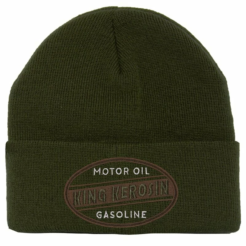 Weiche Wintermütze mit Vintage Flair von King Kerosin. Die Motor Oil Mütze hat ein besticktes Patch an der Vorderseite.