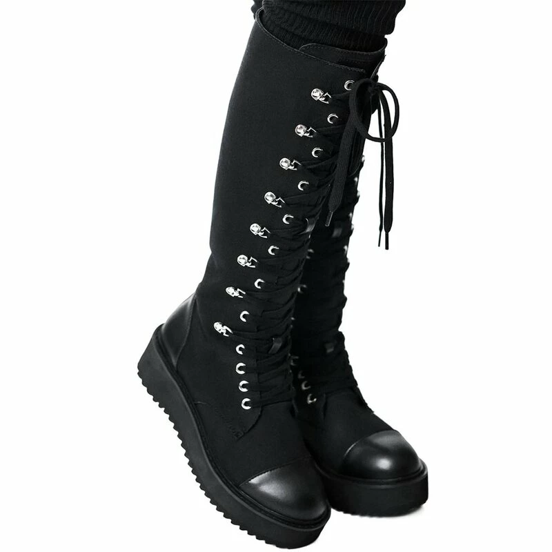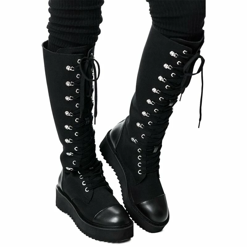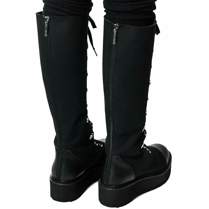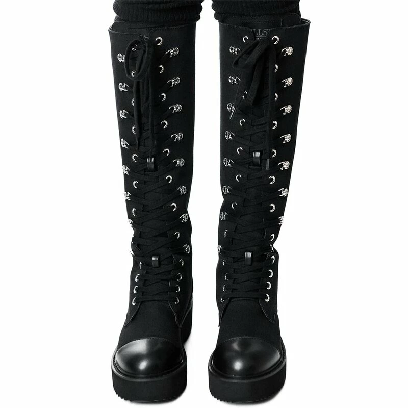 Les gens qui vivent d’espoir mourront de désespoir. Les bottes Killstars Despair sont destinées aux sorcières qui empruntent leur propre chemin avec des pas audacieux. Les bottes sont en sergé de toile avec des renforts en cuir vegname. Il y a des lacets extra longs sur le devant. Il y a des fermetures éclair à l’arrière pour une entrée facile.