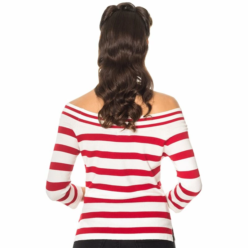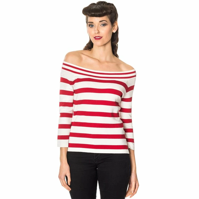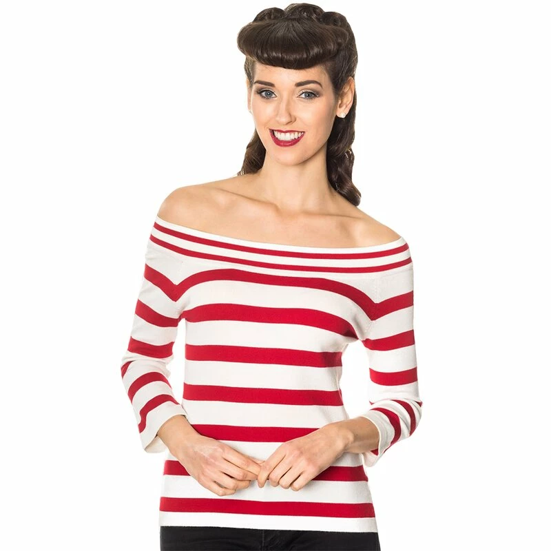 Pull léger, idéal pour les douces soirées d’été, de Dancing Days. Chaque tenue vintage simple et chic est merveilleusement complétée par le pull rayé Ahoi.
