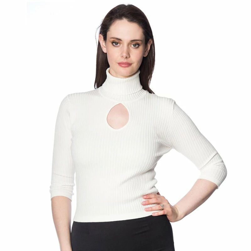 Pull à col roulé chic de Dancing Days. Le pull Louise a un motif côtelé et un col roulé avec un trou de serrure. Le matériau est un mélange de viscose extra doux.